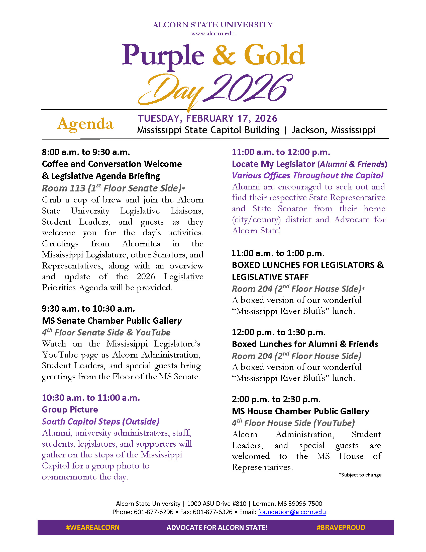 2026 Purple & Gold Day Agenda