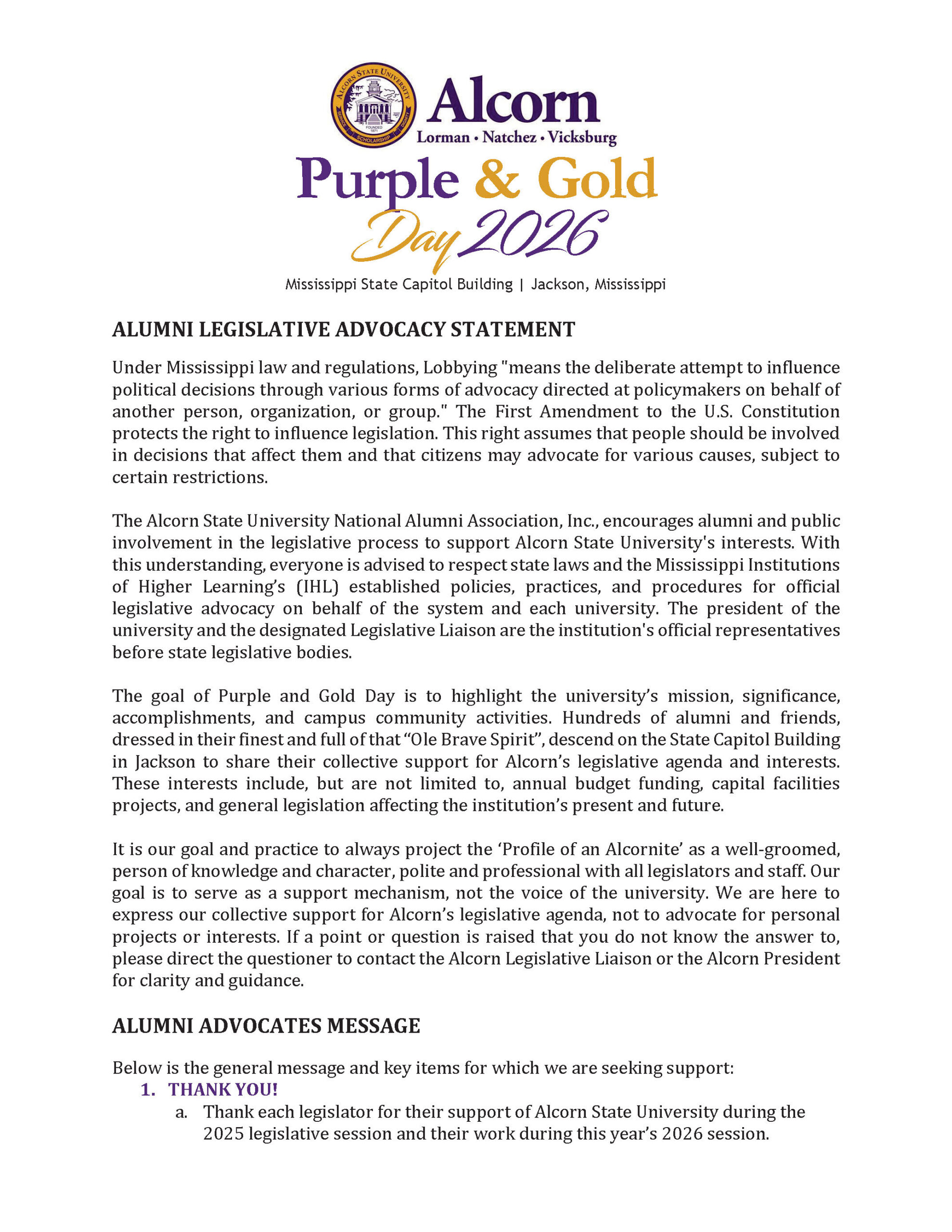 Alumni Advocacy Action Plan